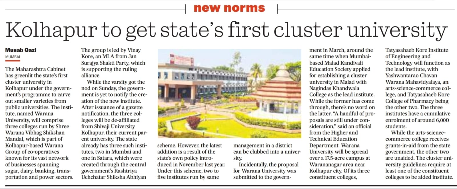 Happy to announce that Government of Maharasthra has announced Warana University as State Cluster University
